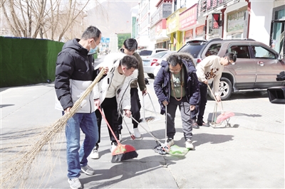 洛扎县组织志愿者在人流量较大的路口,向过往群众提供免费义诊、免费理发、政策讲解等志愿服务,发放了网络安全等宣传单(手册),同时还开展了有奖知识问答。志愿者们还走上街头,对县城主干道两侧垃圾、小广告和破损标语进行了清理。