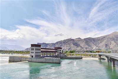 拉萨市中华文化公园旁调节水量的水坝(5月6日摄)。