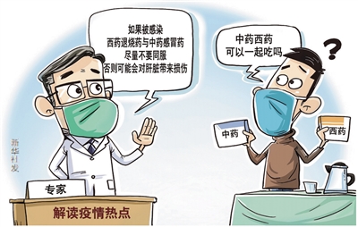 张伯礼:当前应当呼吁广大民众理性用药、合理用药,切忌病急乱投医以及过量用药。如果被感染,西药退烧药与中药感冒药尽量不要同服,如服用连花清瘟、金花清感、宣肺败毒颗粒等有退热功效的中成药,就不再联合服用布洛芬或对乙酰氨基酚了。其他中药西药如服用也应间隔1小时,避免互相影响。当然若是服用了感冒类中药,但咽痛明显,可以加服六神丸、清咽滴丸等对症药。同时应把握“中病即止”原则,症状消失后及时停止用药。