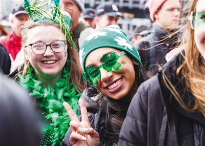 3月11日,在美国芝加哥市中心的芝加哥河畔,人们穿戴圣帕特里克节日服饰参加活动。 新华社发(乔尔·莱纳摄)