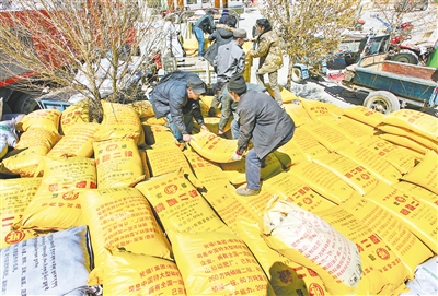图为扎囊县群众在搬运化肥。