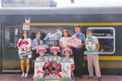 暑运以来,中国铁路成都局集团有限公司重庆客运段在贵州往返重庆的5630/5629次普速列车上打造主题文化车厢,增设“列车集市”和非遗大舞台,在助农增收的同时,满足旅客暑期多元化出行需求。旅客乘坐该趟列车,不仅可欣赏沿途各地的风景,还能在列车上逛“集市”、看非遗表演,体验别样旅途时光。 新华社发(冉伟 摄)