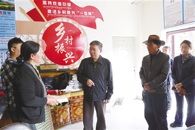 图为许成仓在琼结县拉玉乡强吉村调研主题教育开展情况。 本报记者 贾立军 摄