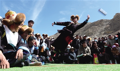 图为乃东区颇章乡雪村“打牛角”比赛现场。 本报记者 次仁龙布 摄