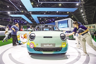 3月27日,观众在泰国曼谷国际车展上参观长安Lumin汽车。