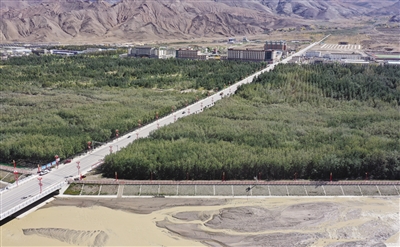 隆子县地处高寒干旱区,平均海拔3800多米,冬季寒冷漫长,漫天风沙严重影响当地群众生产生活。从20世纪60年代开始,世代饱受风沙肆虐的隆子人民,开始栽种沙棘,接续治沙。一场撼人心魄的“生态革命”,在隆子河谷悄然拉开帷幕。经过半个多世纪的辛勤栽植,隆子河谷筑起了一道40余公里、面积超50平方千米的“绿色长城”,2019年被世界纪录认证机构WRCA认证为“世界最大人工种植连片沙棘”。俯瞰这片沙棘林,犹如一条“绿色哈达”,守护着这里的碧水蓝天。