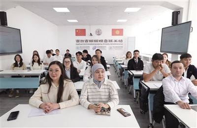 10月26日,学生们在吉尔吉斯斯坦首都比什凯克的鲁班工坊智慧教室内上课。