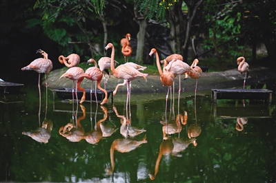 这是10月24日在哥伦比亚卡利动物园拍摄的美洲火烈鸟。