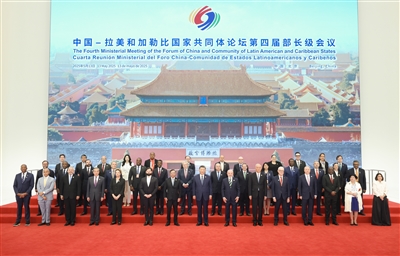 5月13日上午,国家主席习近平在北京国家会议中心出席中国—拉美和加勒比国家共同体论坛第四届部长级会议开幕式并发表主旨讲话。这是习近平同与会嘉宾集体合影。 新华社记者 丁海涛 摄
