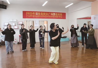 近日,由琼结县文化和旅游局主办、琼结县文化综合服务中心承办的2025年群众广场舞培训班在县青少年活动中心正式开班。全县40余名广场舞爱好者积极报名参与,培训将持续10天,系统学习6首琼结原创果谐和4首区内流行锅庄舞。培训班采用“理论+实践”相结合的方式,充分利用晚间时间开展教学。