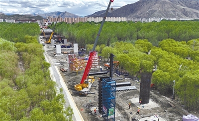 由中铁建城通公司承建的山南萨热路跨江大桥全长1457米。大桥建成后,将成为连接雅江两岸的重要交通枢纽,有力推动山南市与拉萨市的一体化发展进程,进一步强化区域产业互补,方便群众出行。