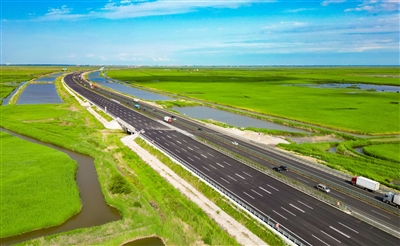 图为6月23日拍摄的已经完工的京哈高速盘锦段改扩建工程(无人机照片)。