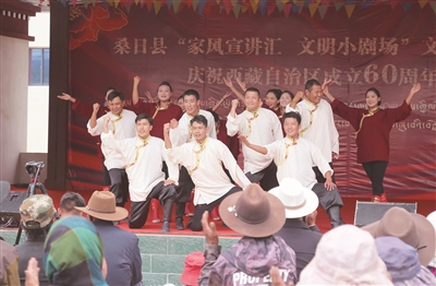 近日,桑日县“家风宣讲汇文明小剧场”文明家风干群共建暨庆祝西藏自治区成立60周年主题活动在扎嘎新村搬迁点开展,邀请自治区兼职教研员、高级家庭教育指导老师卓玛进行宣讲。