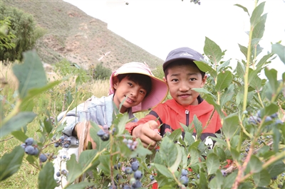 图为孩子们正在采摘蓝莓。 本报记者 次仁龙布 摄