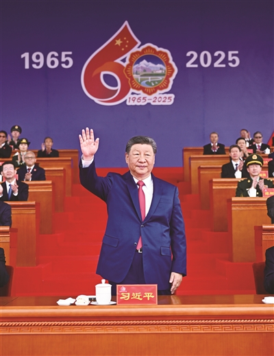 王沪宁发表讲话。他说,1965年9月,在党中央亲切关怀和党的民族政策光辉照耀下,西藏自治区宣告成立。这是西藏发展史上具有划时代意义的大事,巩固了西藏和平解放和民主改革的伟大成果,实现了西藏社会制度的历史性跨越。60年来,西藏经济社会全面发展,民族区域自治制度成功实践,民族团结日益巩固, (下转第三版B)(上接第一版B)各族人民生活蒸蒸日上,充分展现了中国共产党领导的坚强力量,充分展现了我国社会主义制度的显著政治优势。
