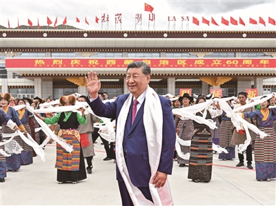 主席习近平在拉萨出席西藏自治区成立60周年庆祝活动后,
