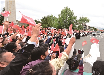 住地途中,各族群众在街道两旁热情欢迎。