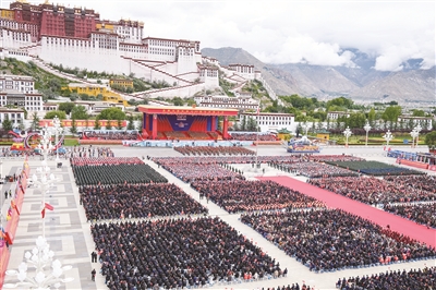 欢聚拉萨市布达拉宫广场,热烈庆祝西藏自治区成立60