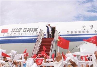 乘专机返回北京。这是习近平在拉萨贡嘎机场向前来欢送