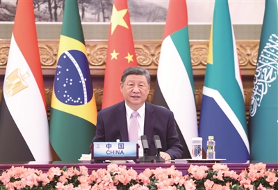 习近平指出,当前,世界百年变局加速演进,霸权主义、单边主义、保护主义甚嚣尘上。金砖国家作为全球南方第一方阵,要坚持弘扬开放包容、合作共赢的金砖精神,共同捍卫多边主义,维护多边贸易体制,推进“大金砖合作”,携手构建人类命运共同体。