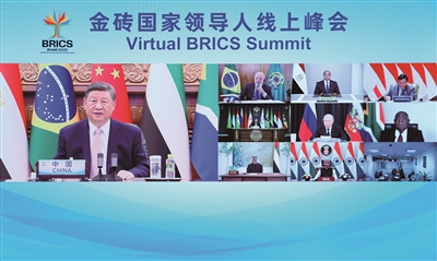 9月8日晚,国家主席习近平出席金砖国家领导人线上峰会,并发表题为《团结合作 砥砺前行》的重要讲话。
