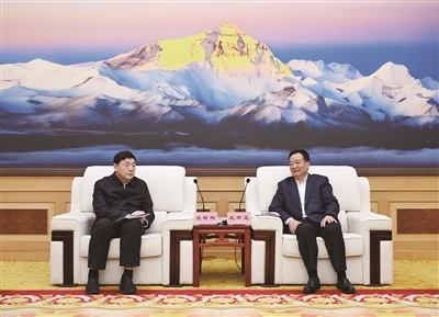 王君正指出,当前全区上下正深入学习贯彻习近平总书记在西藏视察工作时的重要讲话精神。希望双方共同学习贯彻习近平总书记关于西藏工作的重要指示和新时代党的治藏方略,深刻领会西藏发展不是单纯的经济问题,而是政治问题、经济问题、社会问题、民生问题的辩证统一,统筹落实“三个赋予一个有利于”总要求,确保党中央决策部署在西藏落地生根、开花结果。深化科学研究,结合“十五五”规划,把握好全局和局部、当前和长远、宏观和微观的关系,因地制宜发展新质生产力,大力推进清洁能源安全高效可持续开发利用,切实把西藏的资源优势转化为经济优势、发展优势。健全工作机制,加强统筹协调,科学规划电网布局,加强电网互联互通,推动西藏更好融入全国统一大市场。加大对口援藏力度,发挥技术、资金、人才优势,支持西藏做好人口素质提升、人心凝聚、人才培养工作,扬长避短、优势互补、共同发展。