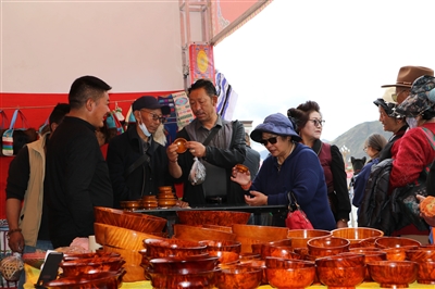 图为市民选购木碗。 本报记者 益西旺姆 摄