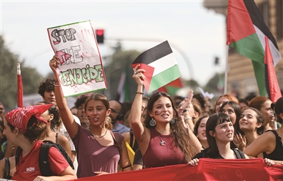 9月22日,人们在意大利罗马参加声援巴勒斯坦的示威游行。
