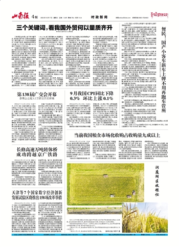 9月我国CPI同比下降0.3% 环比上涨0.1%
