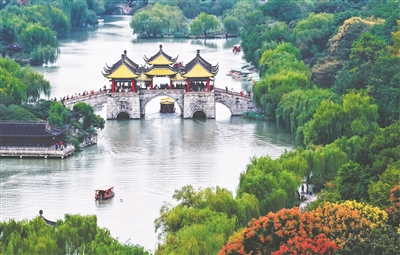 图①为10月19日拍摄的江苏扬州瘦西湖风景区秋景(无人机照片)。