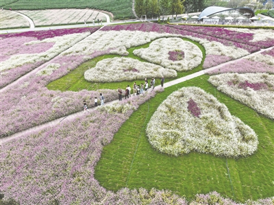 图②为10月19日,人们在浙江省金华市武义县“花田美地”游玩(无人机照片)。