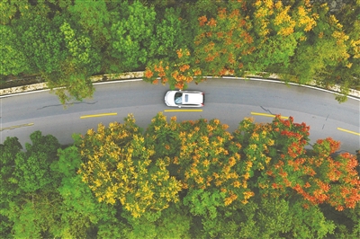 图③为10月18日,车辆行驶在重庆市黔江区通往小南海景区的公路上(无人机照片)。
