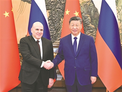 米舒斯京转达普京总统对习近平主席的亲切问候和良好祝愿。米舒斯京表示,祝贺中共二十届四中全会成功举行,相信中国一定会顺利实现“十五五”规划建议确定的目标,取得更大经济社会发展成就。两国元首今年两次会晤,对俄中关系发展作出战略规划,巩固了俄中全面战略协作伙伴关系。俄方愿同中方一道,落实两国元首达成的重要共识,深化经贸、科技、能源、农业、数字经济等领域合作,密切人文交流,加强多边协调配合,推动两国合作取得更多成果。