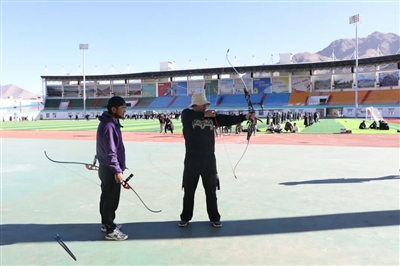 图为运动员在练习射箭。 本报记者 益西旺姆 摄