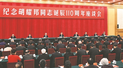 新华社北京11月20日电 中共中央20日上午在人民大会堂举行座谈会,纪念胡耀邦同志诞辰110周年。中共中央总书记、国家主席、中央军委主席习近平发表重要讲话强调,要认真学习胡耀邦同志的崇高精神风范和优良作风,不忘初心、牢记使命,坚定历史自信,增强历史主动,以一往无前的奋斗姿态扎实推进各项事业。