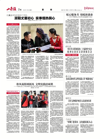 在促进民族团结和移风易俗宣传方面,多颇章乡嘎东团结新村结合各党支部实际,充分利用治安巡逻队、就业服务队、文明引导队、政策宣讲队、党员先锋队、文艺演出队等六支队伍,常态化开展“党员双报到”“邻里互助行动”“文艺汇演”等联谊活动,采用群众喜闻乐见的“田间地头话家常”等接地气的方式,引导群众自觉遵守《村规民约》,有效增强了搬迁群众的归属感和认同感,营造了互帮互助的浓厚氛围。