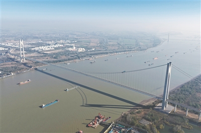 图为11月26日拍摄的南京新生圩长江大桥(无人机照片)。