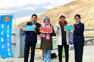 图为浪卡子县税务局“羊卓党员税费宣传服务队”深入景区开展政策宣讲。
