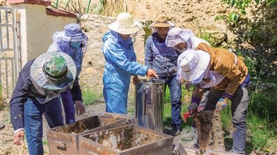 浪卡子县卡热乡地处雅江中上游,全乡山高谷深、土地零星破碎,基础设施薄弱,曾面临集体经济无特色、发展动力不足的老大难问题。为解决眼前难题,新一届党委班子锚定“山坡经济+庭院经济”发展思路,以党建为引领,依托天然生态优势,探索出一条“党建+公司+集体”的高原蜜蜂养殖产业振兴路。