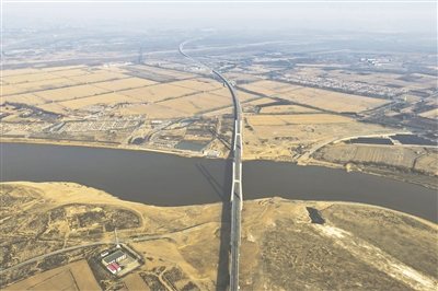 12月22日拍摄的包银高铁乌海黄河特大桥(无人机照片)。