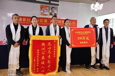 图为山南市锦砻志愿者协会为琼嘎顶社区老年日间照料中心捐款活动现场。