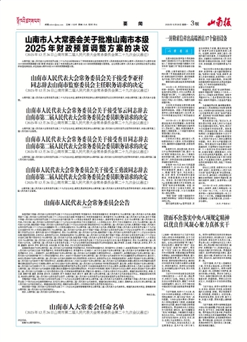 | 山南市人大常委会关于批准山南市本级2025年财政预算调整方案的决议 | |