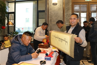 本报讯 笔墨飘香添雅韵,履职同心启新程。1月15日,政协第二届山南市委员会第六次会议委员报到现场暖意融融,由市政协、市文联联合市书法协会精心策划的送书法活动同步开展。多位书法名家挥毫泼墨,以笔墨为媒,为前来报到的政协委员送上饱含新春期许与履职祝福的书法作品,让浓厚的文化气息浸润盛会开篇,为紧张的会议节奏注入脉脉温情。