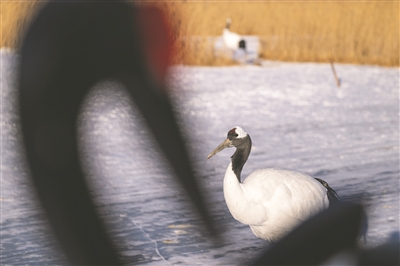 这是1月21日拍摄的黑龙江扎龙国家级自然保护区内的丹顶鹤。