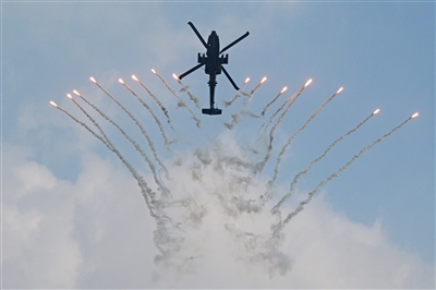 2月1日,在新加坡樟宜展览中心举行的新加坡航展媒体预演上,一架新加坡空军阿帕奇AH-64D直升机进行飞行表演。