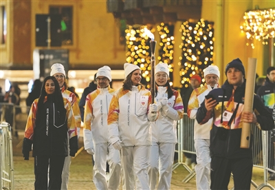 3月3日,一名火炬手在仪式上传递火炬。
