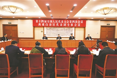 3月9日,西藏代表团举行全体会议,审议全国人大常委会工作报告、关于法律清理工作情况和有关法律和决定处理意见的报告。
