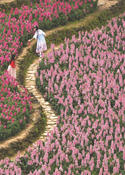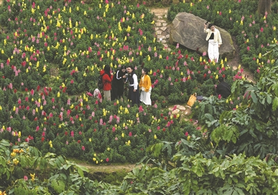 春日鲜花正开,南宁市民纷纷走出家门欣赏春天美景。
