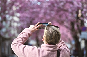 近日,德国西部城市波恩老城区樱花盛开,吸引了许多游人前来观赏。