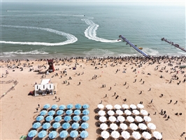 图②为4月5日,游客在江苏省连云港市连岛景区大沙湾海滨浴场休闲游玩(无人机照片)。